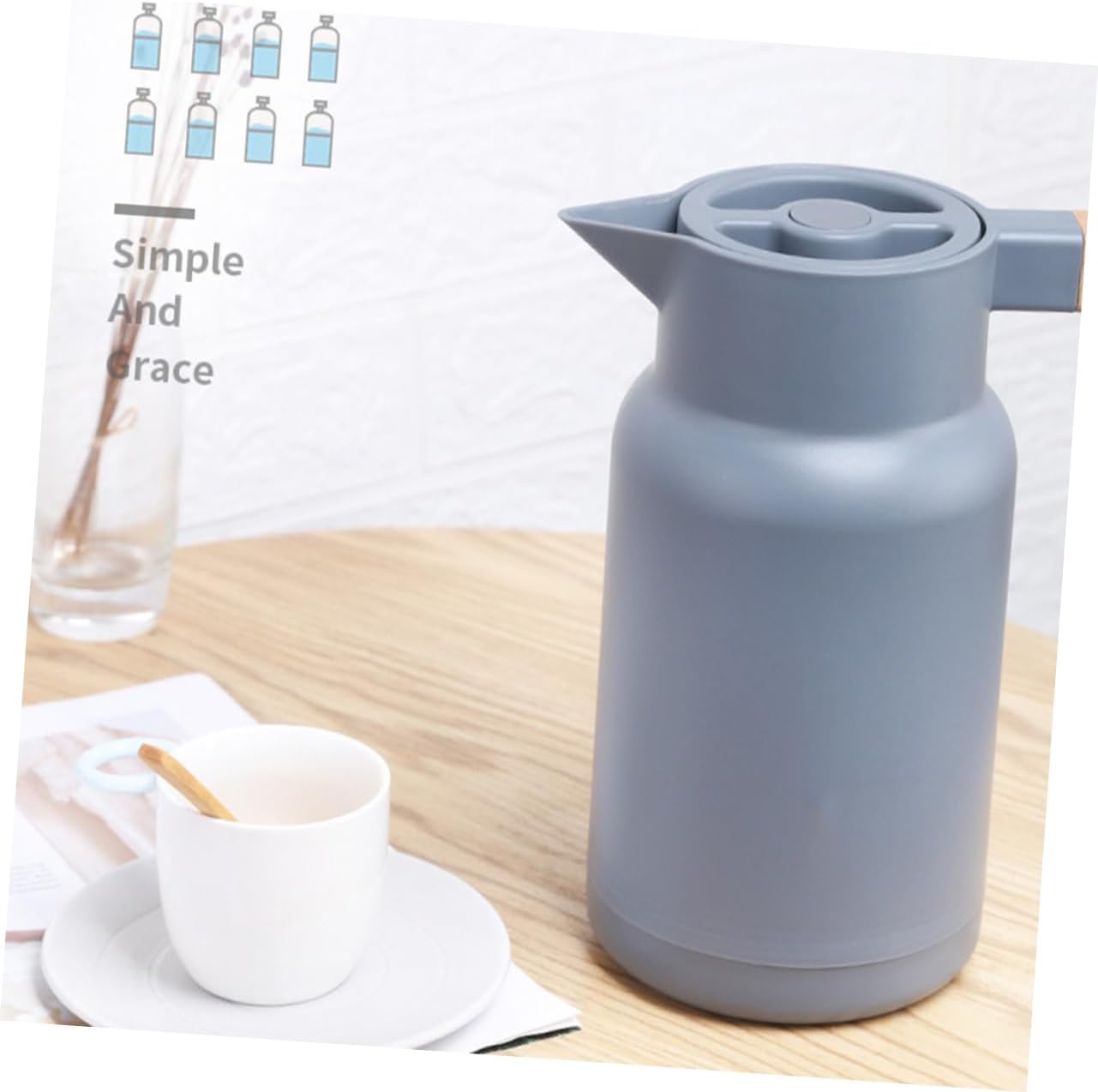 Package List 1 x Water Bottle Pot Features - Color: Grey water kettle. - Material: plastic, glass glass pitcher with lid. - Size: 20 x 14 x 25cm thermal bottle pot. - Made of material for long time and durable use large capacity thermal bottle. - Smooth surface, anti-leak, convenient to use tea vacuum pot. - The wood handle makes it easy to hold water container. - Insulated interior maintains the temperature effectively vacuum pot. - Suitable for home, office and the journey thermal flask. - Large capacity design for you to storage enough water once time insulated water bottle.Goods Descriptioncarafe tea pot Easy and convenient to use.double walled thermal pots The inner part of the kettle is made from which makes it easy to clean and to use.Heat Retention Made of , the insulation bottle is study and durable.glass It is for home, office, school, travel and outdoor use
