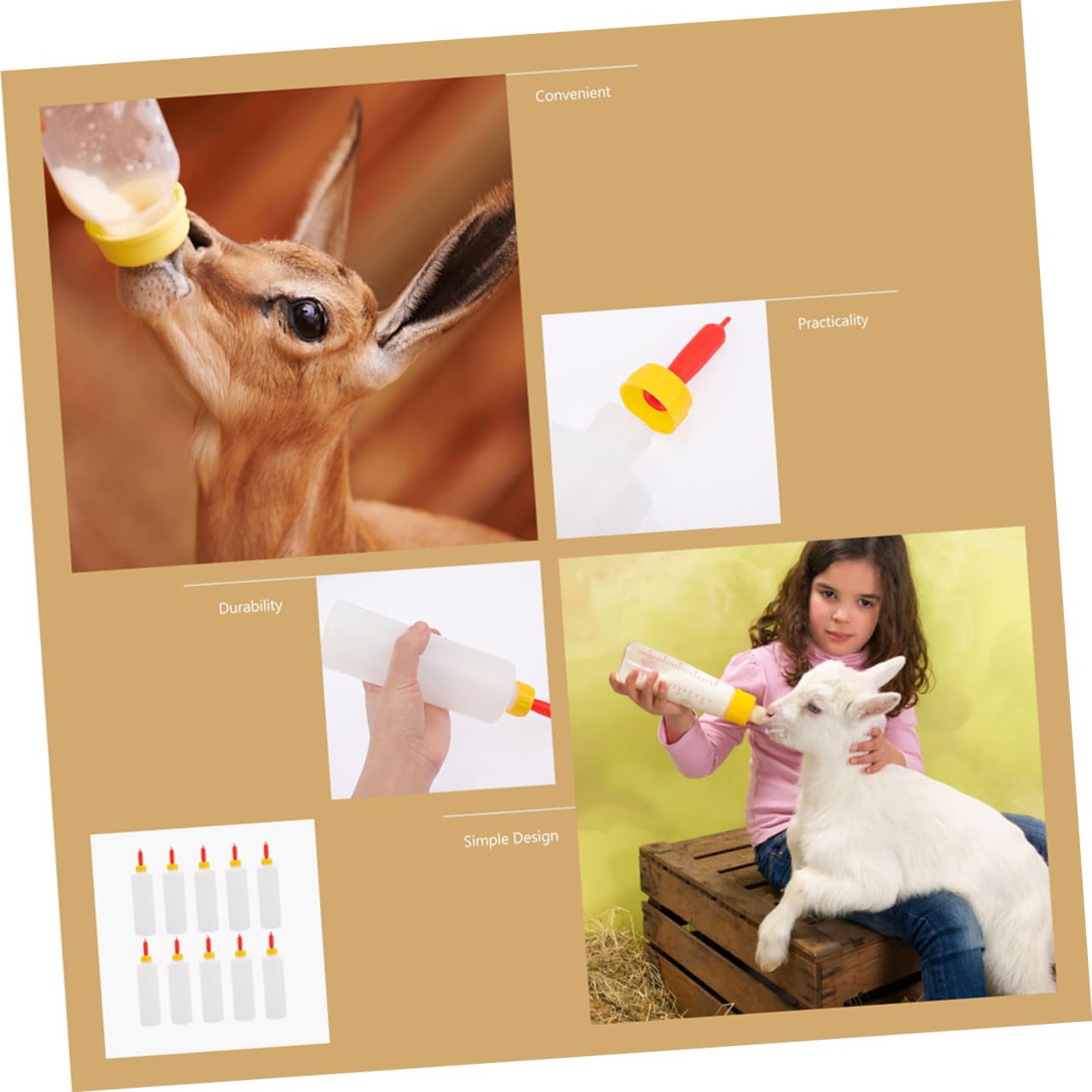 Package List 8 x Milk Bottles 8 x Pacifiers Characteristics -Color:Assorted Color goat milk feeder bottle -Size:23.00X6.00X6.00cm/9.04X2.36X2.36in sheep feeding bottle -Capacity: 400ml calves nursing bottle -Material:PVC sheep milk bottle -Unique and convenient pacifier design provides more smooth drinking and without leaking lamb nursing bottle. -Designed for lambs, the pacifiers are similar to the 's milk, making it easy for the lamb to eat calf bottle feeder . -Coming with the pacifier replacements, Goat Feeder is perfect for using in home or farm nursing bottles. -It comes with the smooth surface, Calf Bottle is very simple and convenient for you to lamb feeding bottle. -Enough capacity, fine craftsmanship and chic details, a good pet feeding kit. The pacifier can be easily removed for easy cleaning and goat bottles.Goods Descriptionpet nursing bottle Lamb Nursing Bottle is and feeding.lamb bottle This item is a young Livestock Nursing Bottle, which is specially designed for the young livestock.sheep feeding bottles It is manufactured with plastic material for convenient and use, and safe for your small farm animal use