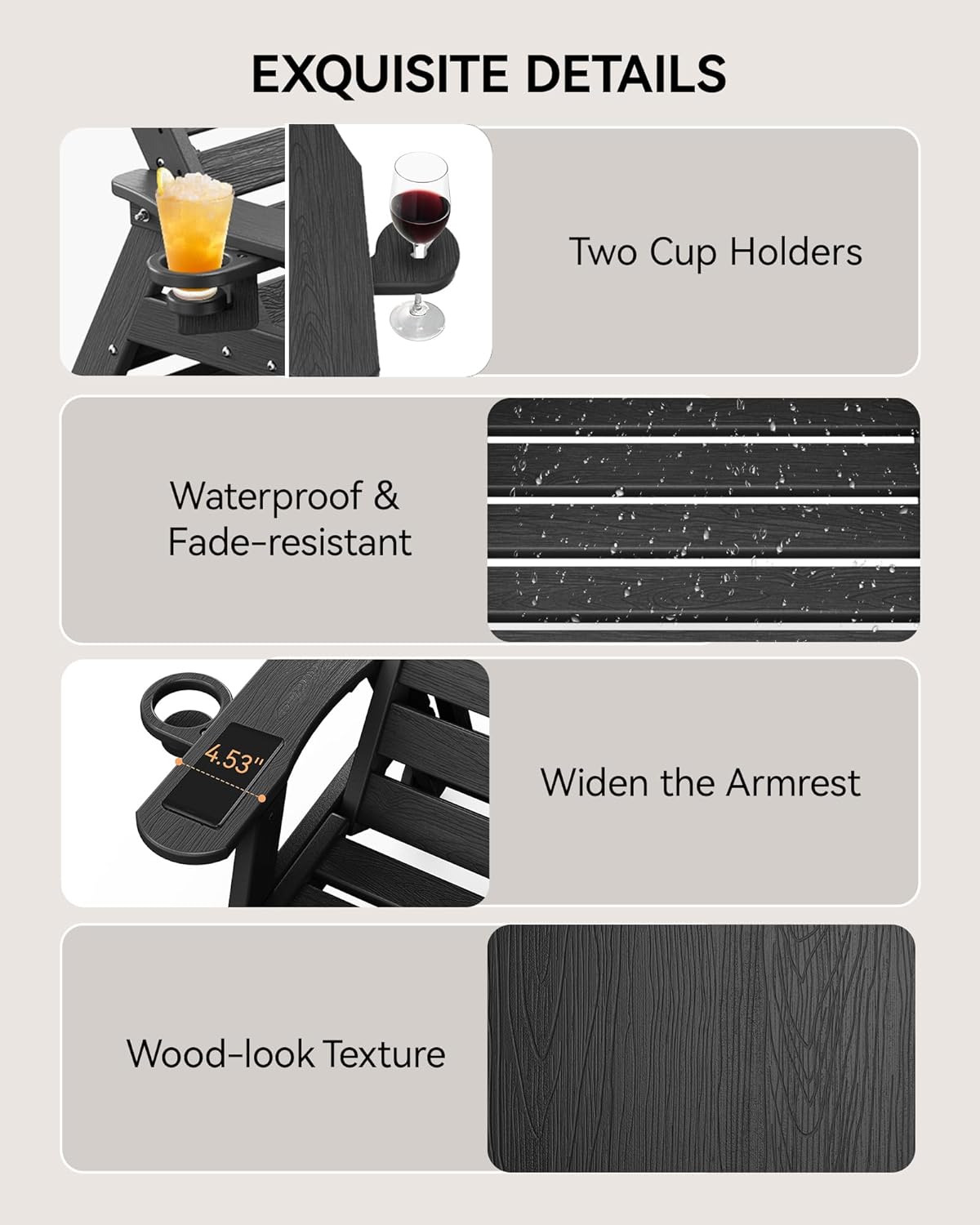 | Additional Features | Adjustable Backrest, Cup Holders, Wheel |